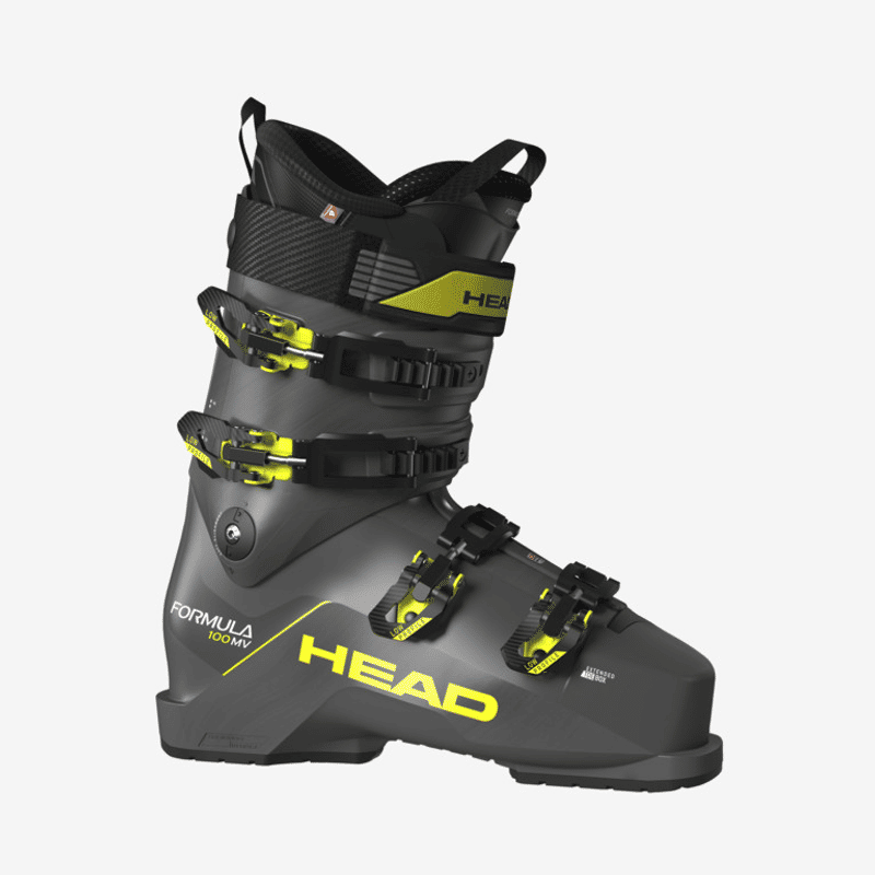 Lo scarpone Formula MV 100 ad alte prestazioni e confortevole assicura che gli sciatori si stanchino meno, abbiano una buona temperatura e godano di una buona vestibilità. Lo scarpone Formula MV 100 ad alte prestazioni e molto confortevole assicura che gli sciatori si stanchino meno, abbiano una buona temperatura e godano di una buona calzata. Con la tecnologia di assorbimento delle vibrazioni e le caratteristiche di adattamento personale approvate dai migliori specialisti di scarponi da sci, il Formula MV 100 può aumentare l'equilibrio attraverso una posizione da gara che consente agli sciatori una posizione più centrale. Una pianta da 100 mm e una punta più ampia offrono più spazio e articolazione nella punta. Inoltre, lo scarpone presenta un flex regolabile da 100 a 110 e quattro leve in lega microregolabili a basso profilo. Un cinturino in velcro da 40 mm consente allo scarpone di chiudersi meglio e l'area del polpaccio è ben supportata, ottenendo così la migliore vestibilità.
